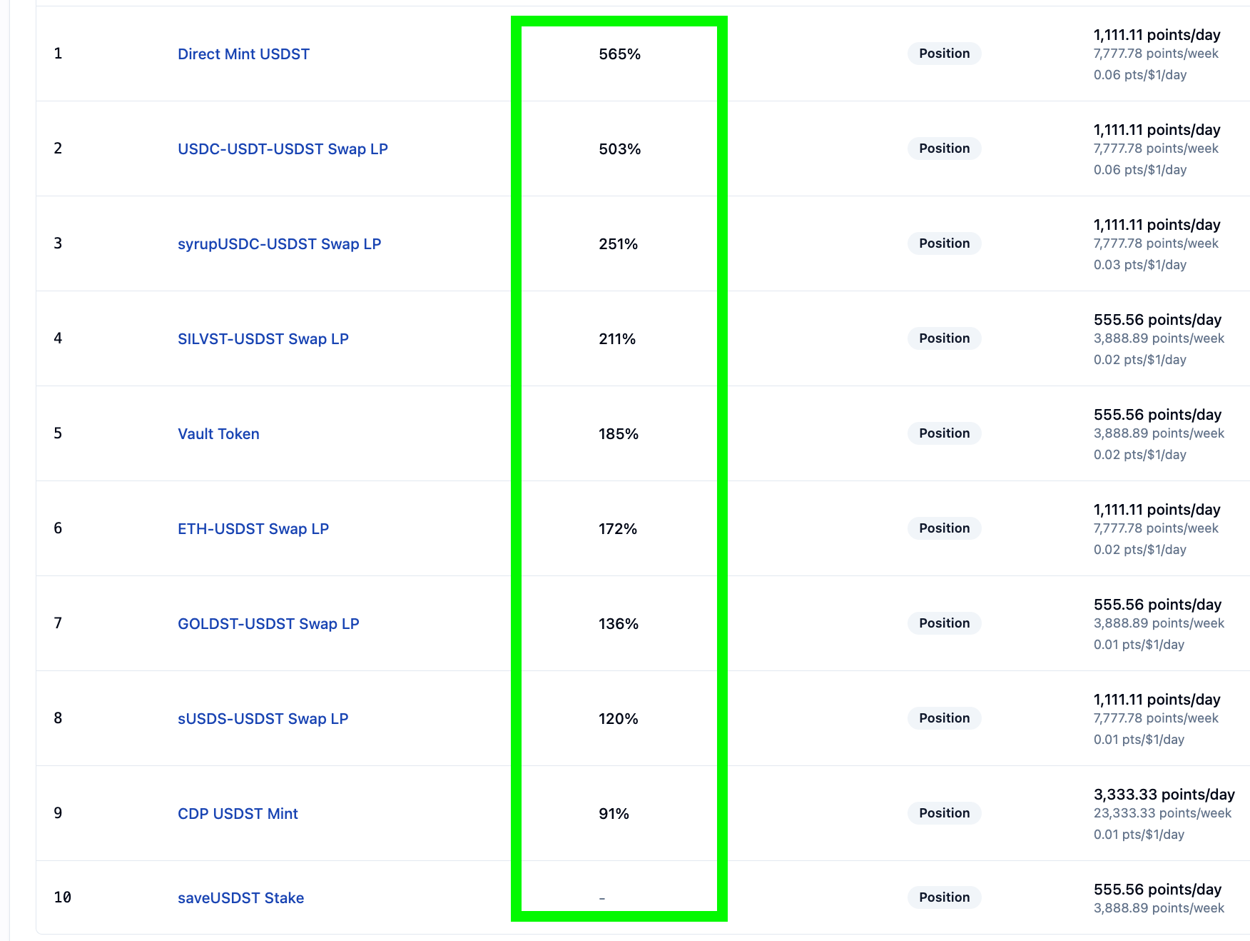 | sUSDS-USDST Swap LP | 1,111.11 |